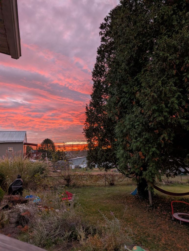 Today may be the warmest morning we’ve had in a couple of weeks. It’s 50 degrees. The rising sun is broadcasting a hazy glow across the green and auburn trees. The birds are singing their good morning song and I am sitting on my back steps, wearing a red robe, drinking a cup of coffee, and thinking about freshly milled flour.